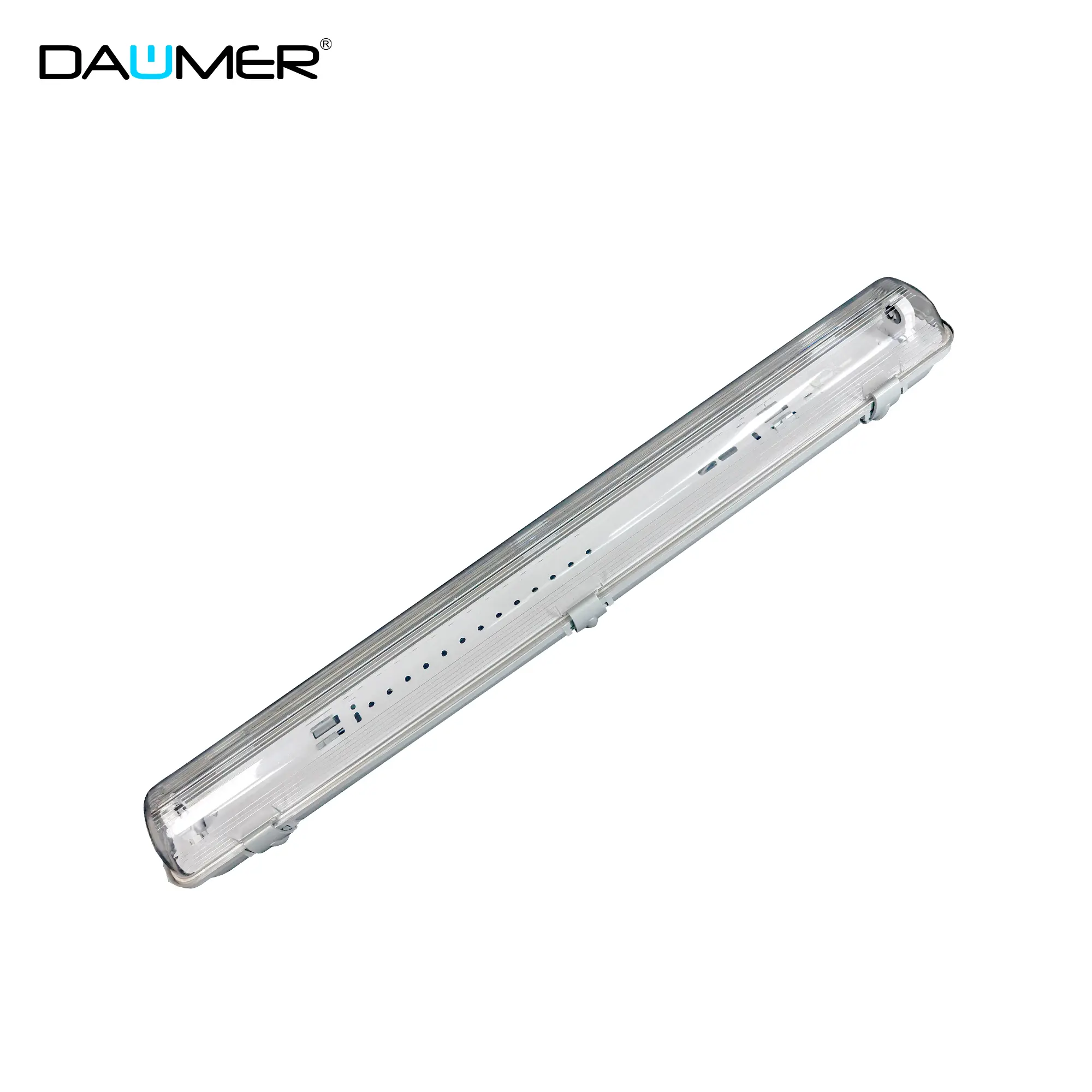 El equipo estanco simple de 60 cm Daumer está diseñado para alojar un tubo LED de 9W, brindando una protección confiable contra agua, polvo y humedad gracias a su grado IP65. Es ideal para estacionamientos, bodegas y áreas industriales, asegurando un entorno seguro y funcional para maximizar el desempeño de los tubos LED en condiciones exigentes.