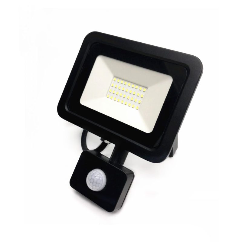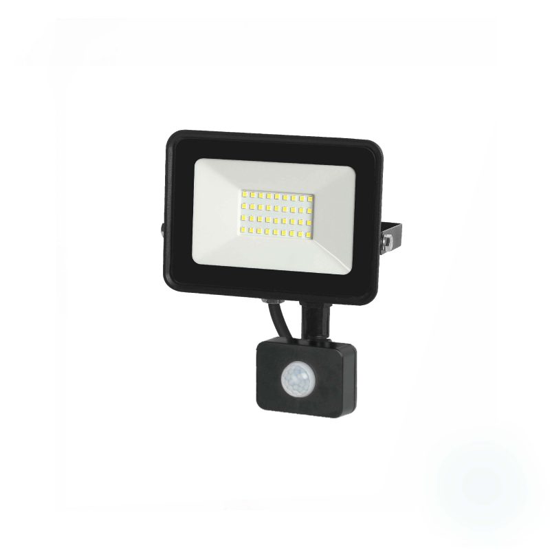 El proyector LED de 30W con luz fría y sensor de movimiento integrado ofrece una iluminación clara y uniforme en un formato compacto y resistente. Su diseño permite una instalación práctica en espacios exteriores e interiores, siendo adecuado para accesos, patios, estacionamientos, bodegas y áreas de circulación.