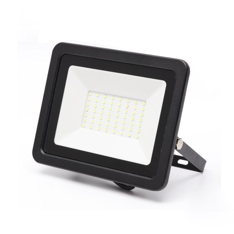 El proyector LED de 50W con luz fría proporciona una iluminación potente y uniforme para aplicaciones en espacios interiores y exteriores. Su diseño compacto permite una instalación práctica en muros, fachadas y estructuras, siendo adecuado para usos residenciales, comerciales e industriales.